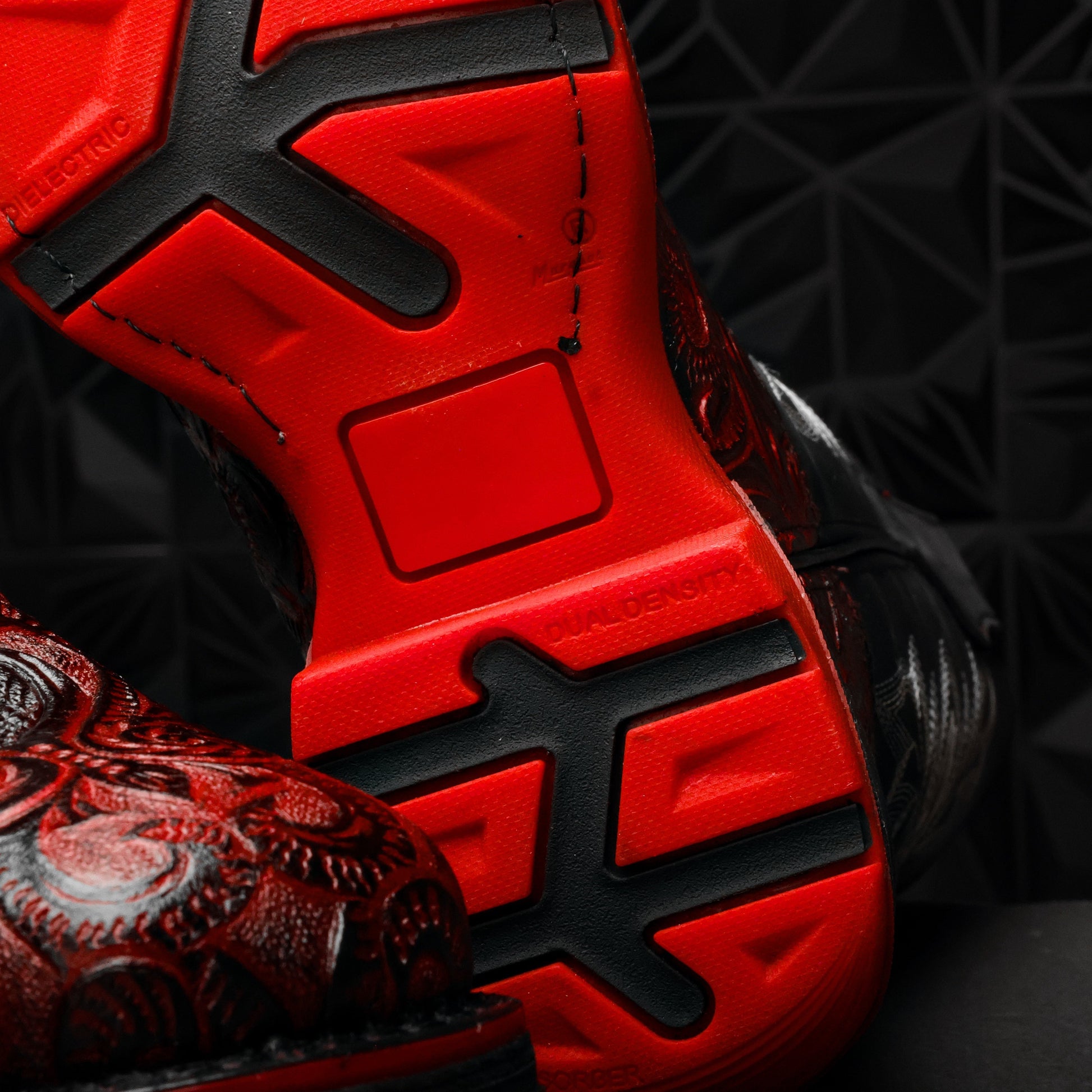 Black Cherry Hand-Tooled Leather Boots - 3D Sole Composite Toe