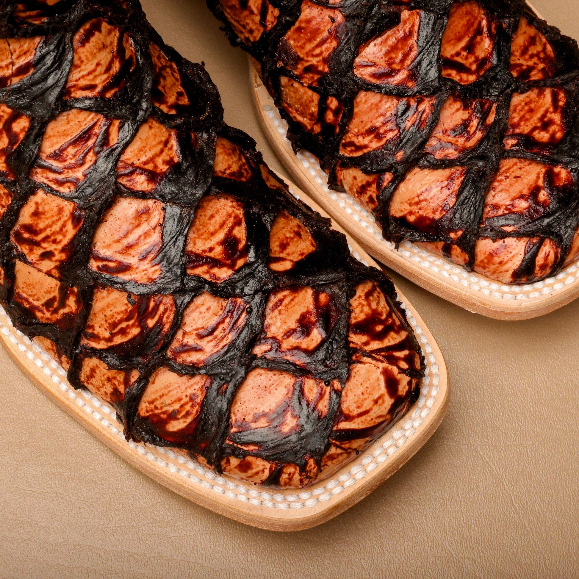Cognac Jumbo Pirarucu Leather Boots - Square Toe
