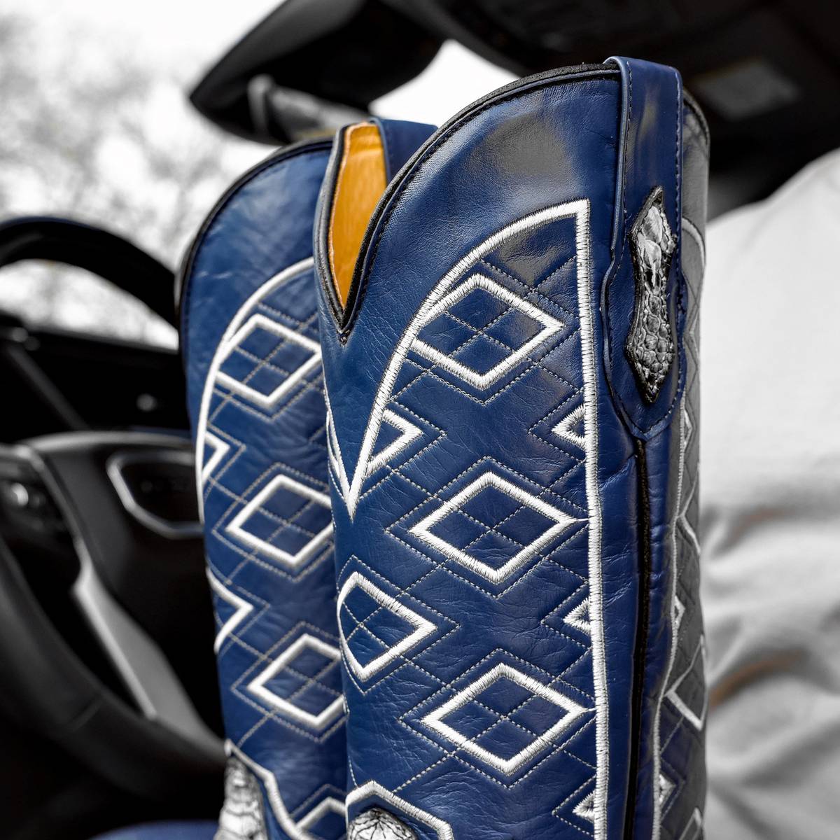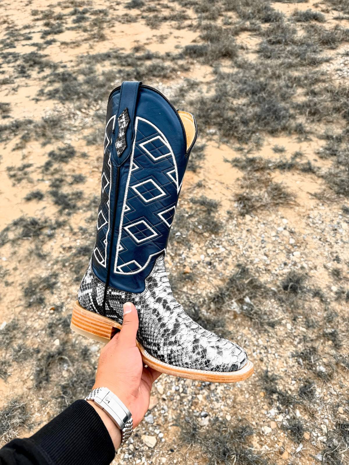 Natural Python Leather Boots - Square Toe