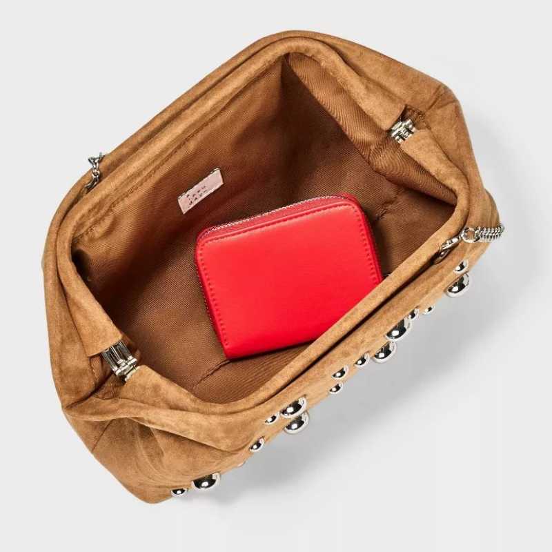 This Studded Shoulder Bag is there for you whenever you need to carry a lot of things with you on the go. Made from polyurethane with an allover studded design, this oversized clutch features an unstructured design with a cinch closure. Great for running errands, vacationing and beyond, it also has a removable chain strap for easy carrying.